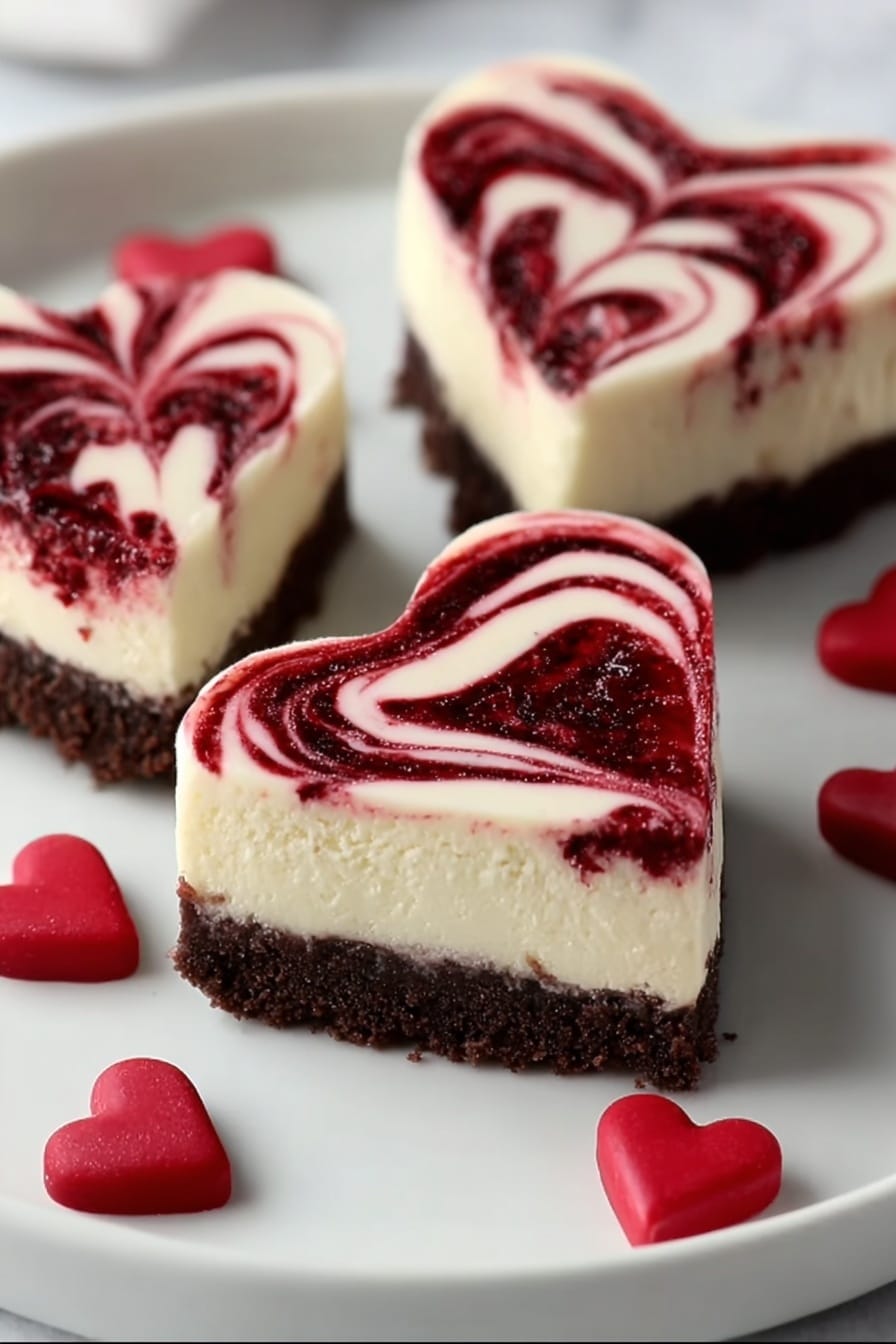 These Best Heart Shaped Cheesecake Bites are adorable, creamy mini cheesecakes with a delicious Oreo cookie crust and swirls of raspberry preserves. Perfect for parties or a sweet treat, they combine a rich and smooth cheesecake filling with a crunchy chocolate cookie base, baked to perfection in heart-shaped molds for a festive touch.