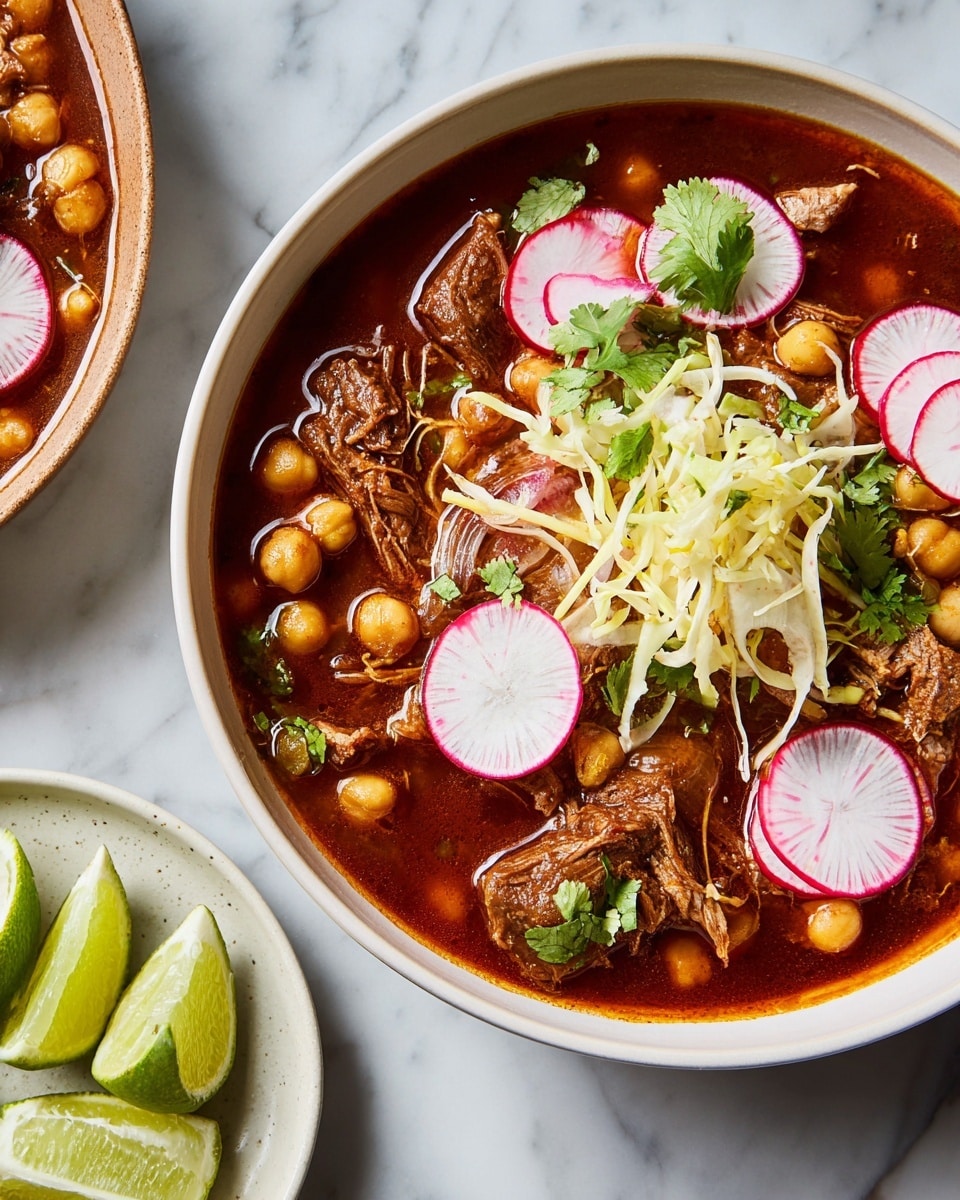 I always go all-in with fresh garnishes because they add brightness to this hearty dish. Thinly sliced radishes and shredded green cabbage bring a crisp texture that contrasts beautifully with the tender pork. Fresh chopped cilantro adds a herbal freshness, and a few lime wedges on the side let you add just the right amount of tang. If you want to take it up a notch, I also love to throw in diced avocado or crunchy tostadas for scooping.