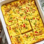 This High Protein Breakfast Casserole is a hearty and nutritious meal perfect for starting your day with a protein-packed boost. Featuring ground turkey or turkey sausage, eggs, cottage cheese, and vibrant vegetables like onions and red bell peppers, it’s an easy-to-make dish that combines savory flavors with a creamy texture. Topped with shredded cheddar and fresh chives, this casserole bakes to a golden perfection and is ideal for meal prepping or serving a crowd.