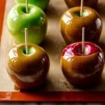 While I don’t usually freeze caramel apples because the texture of the apple changes when frozen, if you must, wrap them tightly in plastic wrap and place in an airtight container. Thaw overnight in the fridge before serving. Keep in mind, the apple may become softer after thawing.