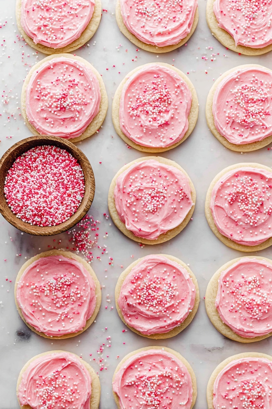 Once the cookies are fully cooled, spread or pipe the frosting generously on top. Finish by sprinkling your colored sprinkles right away so they stick beautifully before the frosting sets. Trust me, the sprinkles add a joyful pop and crunch that’s irresistible!