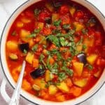 Ciambotta is a comforting Italian vegetable stew packed with fresh eggplant, zucchini, potatoes, and peppers simmered in a savory tomato broth. This hearty, rustic dish captures the essence of summer vegetables in a simple yet flavorful stew, perfect for a wholesome meal that highlights classic southern Italian flavors.