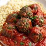 This easy lamb meatballs recipe features tender, flavorful meatballs spiced with an aromatic blend of herbs and spices, baked to perfection, and served with a rich saffron tomato sauce. The sauce is enhanced with cinnamon, saffron, walnuts, and golden raisins, creating a delightful balance of savory and sweet. Perfect as a hearty appetizer or main dish, these meatballs pair wonderfully with couscous or your favorite grain.