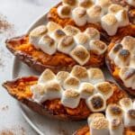 Reheat your leftovers in a 350°F oven until warmed through, about 15-20 minutes. I avoid microwaving because it makes the skins chewy and marshmallows gummy. If you want fresh marshmallows on top, pop them under the broiler for a minute or two after reheating.