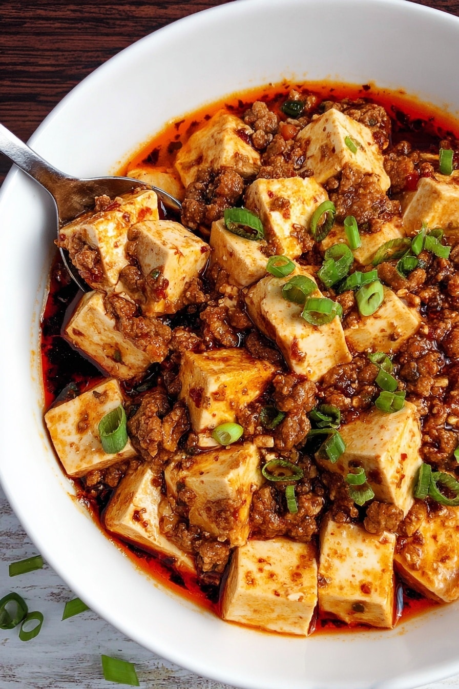 I always finish my Mapo Tofu with chopped green onions—they add a lovely fresh crunch and a hint of sharpness that balances the rich sauce. Sometimes, for a little extra kick and color, I sprinkle on some toasted sesame seeds or a drizzle of fragrant sesame oil right before serving. It’s such a simple addition but elevates the whole dish.