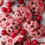 Delight in these vibrant Maraschino Cherry Chocolate Chip Cookies that combine sweet, juicy cherries with rich semi-sweet chocolate chips. Soft, chewy, and beautifully tinted pink with gel food coloring, these cookies are perfect for any occasion where a pop of color and a burst of flavor are desired. The dough is chilled and frozen briefly before baking to maintain the perfect shape and chewiness, resulting in an irresistible treat that’s as festive as it is tasty.