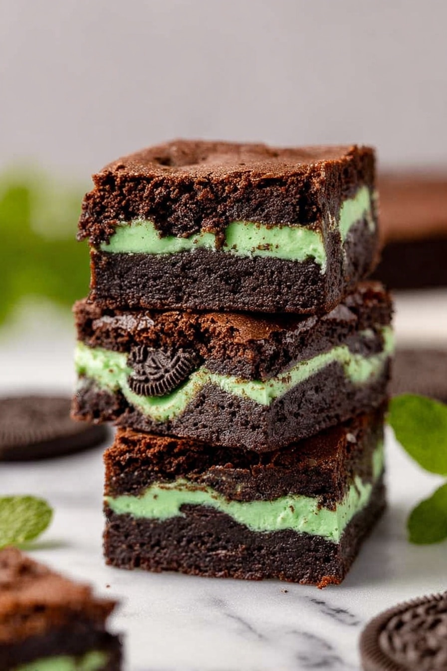 For birthday parties or special occasions, I’ve turned these Mint Oreo Brownies into cute mini squares layered in glass jars or wrapped individually with twine and a mint leaf on top—everyone loved the presentation! You can also swirl some mint chocolate chips into the batter before baking for a more festive look.