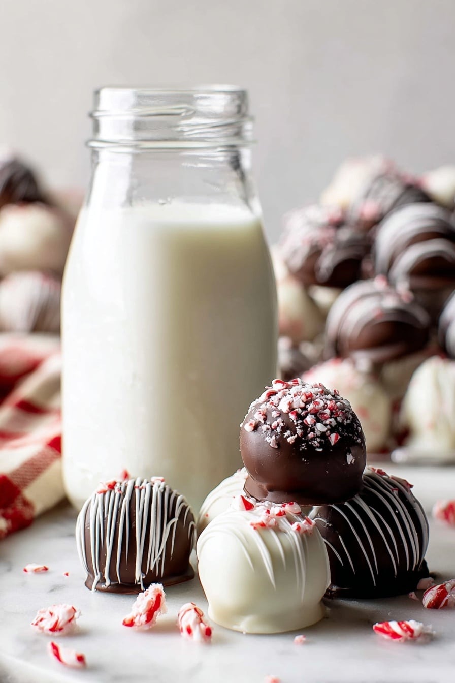 Drizzle contrasting chocolate over the coated balls and immediately sprinkle with the remaining crushed peppermints for sparkle and extra crunch. The peppermint not only looks stunning but adds that refreshing minty burst.