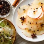 A vibrant and tangy Pickled Apples recipe featuring thinly sliced apples soaked in a spiced honey and white wine vinegar brine. This recipe blends warm spices like star anise, cardamom, cinnamon, and allspice to create a perfect balance of sweet, tart, and aromatic flavors, ideal for adding a zesty crunch to salads, cheese boards, or sandwiches.