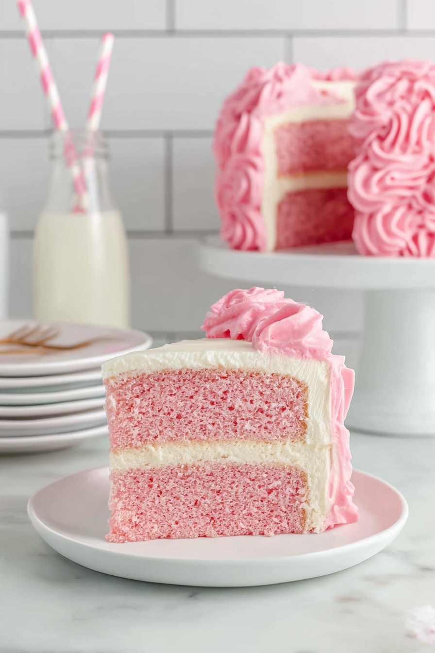- Vibrant Pink Color: The gel food coloring gives the cake a beautiful, rich pink without altering the texture.