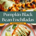 For gatherings, I like to bake the enchiladas in individual small ramekins or mini cast iron skillets and top each with avocado slices and cilantro. It feels special and you don’t have to worry about cutting portions. Another fun idea is layering the filling in a casserole style with alternating tortillas and sauce for a pumpkin black bean enchilada lasagna.