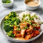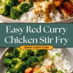 This Red Curry Chicken Stir Fry with Spicy Cashew Sauce is a vibrant and flavorful dish combining tender chicken breast cooked in a rich red curry paste and brown sugar sauce. Paired with a creamy, spicy cashew sauce and steamed broccoli, it makes for a wholesome and satisfying meal served over fluffy rice. The recipe balances spicy, sweet, and savory flavors with a luscious nutty sauce that elevates this quick and easy stir-fry to a delicious weeknight dinner option.