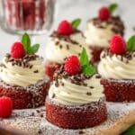 Delightfully moist and tender Mini Red Velvet Bundt Cakes topped with a smooth and creamy cream cheese frosting. Perfectly portioned bite-sized treats that combine classic red velvet flavors with a rich, tangy frosting, ideal for parties, celebrations, or anytime you crave a sweet indulgence.