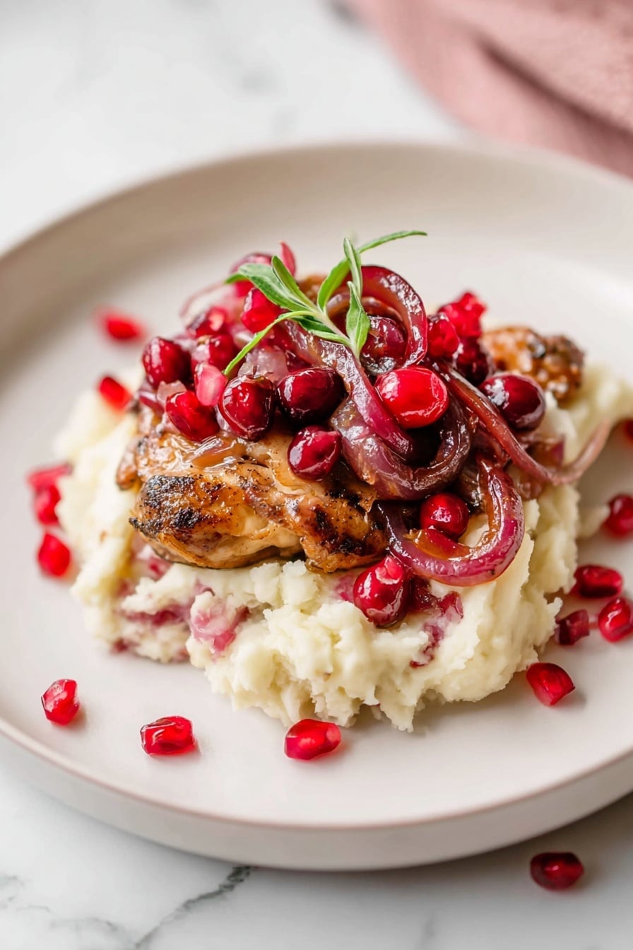 I like to finish this dish with a sprinkle of fresh tarragon leaves or even some chopped parsley for a pop of color and freshness. A light drizzle of extra balsamic vinegar or a touch of olive oil right before serving really amps up the flavor and shine on the chicken and cranberries.