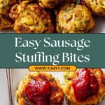 I store leftover sausage stuffing bites in an airtight container in the fridge for up to 3 days. They’re still tasty the next day and even better gently reheated in the oven to regain that crispy outside.