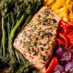 This Sheet Pan Salmon and Veggies recipe offers a simple, healthy, and flavorful meal where tender salmon and vibrant vegetables are roasted together with a delicious honey garlic sauce. Perfect for meal prep or a quick weeknight dinner, this dish combines broccolini, bell peppers, and red onion with a tangy, slightly sweet sauce that enhances the natural flavors of the salmon and veggies.