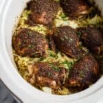 - Assemble the dish: Place the boneless skinless chicken thighs on top of the cabbage and butter layers, then sprinkle the seasoning mixture evenly over the chicken to ensure every bite is flavorful.