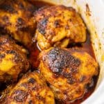 - Using bone-in, skin-on chicken thighs keeps the meat tender and flavorful.