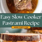 This Slow Cooker Pastrami Recipe transforms a simple corned beef brisket into tender, flavorful pastrami using a blend of spices, beer, and hickory liquid smoke. Ideal for making classic deli-style sandwiches like Reubens, this recipe is easy to prepare and slow cooks the meat to perfection with minimal effort.