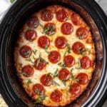 This Slow Cooker Pizza Dip is a warm, cheesy, and savory appetizer perfect for parties and casual gatherings. Layers of cream cheese, mozzarella, pepperoni, and pizza sauce are slow-cooked to bubbly perfection, then garnished with fresh basil and served with fresh breads or veggies for dipping.