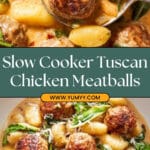 This Slow-Cooker Tuscan Chicken Meatballs with Gnocchi recipe offers tender, flavorful meatballs cooked to perfection in a rich tomato and wine sauce with sun-dried tomatoes and baby spinach. Featuring a creamy finish with Parmesan and heavy cream, this comforting Italian-inspired dish is effortlessly made in the slow cooker for a hands-off meal that yields 4 to 6 servings of hearty, melt-in-your-mouth goodness.