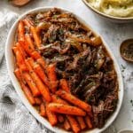 - Serve: Shred the venison roast into preferred sized pieces. Serve the meat and carrots over mashed potatoes if desired. Top with the thickened gravy and garnish with fresh herbs for an elegant presentation.
