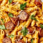 When reheating, I warm the sauce gently in a saucepan and add a splash of chicken broth or cream to loosen it up. Then, toss in the pasta and sausage to heat through. Avoid microwaving directly because it can make the sauce separate; slow and steady is the way to go here.