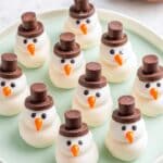 - Create Snowman Faces: Use assorted sprinkles to decorate faces on the snowmen. Typically, black circular sprinkles work for eyes and orange nonpareil sprinkles for the nose. Get creative with other sprinkle shapes for added personality.