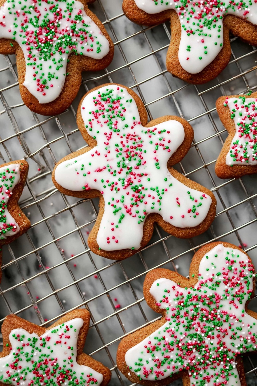 - Decorate Cookies: Dip each cooled cookie face down into the icing, letting excess drip off. Place cookies on a rack or baking sheet and quickly sprinkle with red and green sugar sprinkles. Allow icing to set before serving.