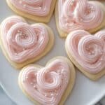 These Soft Sour Cream Sugar Cookies with Cream Cheese Frosting are tender, flavorful, and perfect for any occasion. The dough is enriched with sour cream, giving the cookies a moist and soft texture, while the cream cheese icing adds a rich, tangy sweetness. Ideal for shaping with simple cookie cutters like hearts and circles, these cookies are delightful treats that balance a classic sugar cookie taste with a creamy frosting finish.