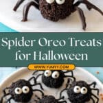 - Attach Eyes: Dab a small amount of melted chocolate on the back of each candy eyeball and stick it onto the top center of each Oreo ball (spider body).