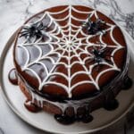 This Spiderweb Cake is an eye-catching dessert featuring rich chocolate cake layers enveloped in a fluffy marshmallow frosting and topped with a luscious chocolate ganache decorated with a spiderweb design made from vanilla icing. Perfect for Halloween or any festive occasion, this cake combines moist chocolate layers with creamy, sweet frosting and a smooth ganache topping.