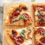 - Bake the Pizza: Bake in the preheated oven for 18-20 minutes or until the crust is golden brown and the cheese in the center is bubbling and melted.