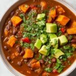 This hearty Sweet Potato and Black Bean Chili is a flavorful vegetarian dish packed with wholesome ingredients and warming spices. Featuring tender sweet potatoes, protein-rich black beans, and a robust blend of chili powder, cumin, and smoked paprika, it simmers to perfection in a Dutch oven. Finished with fresh toppings like sour cream, shredded cheddar, and avocado, it makes a comforting and nutritious meal for any day.