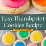 Delicious and colorful Thumbprint Cookies with smooth, sweet colored icing. These buttery cookies have a soft center indentation filled with a vibrant, flavored icing that makes them perfect for any occasion or celebration. Made with simple ingredients and easy to follow steps, they are a fun baking project for home bakers looking to add a pop of color to classic cookies.