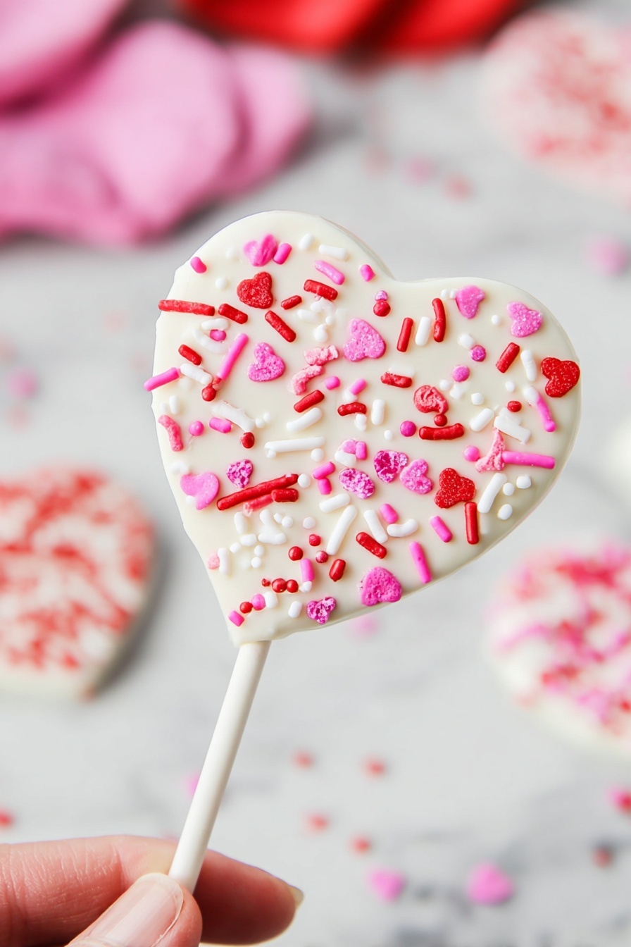I usually stick with holiday-themed sprinkles—tiny hearts, edible glitter, or even a light dusting of colored sugar. It adds just the right festive sparkle. Sometimes, I drizzle a bit of contrasting melted chocolate on top for extra pizazz. You’ll enjoy making each lollipop your own little piece of art!