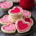 These Valentine’s Day Slice N’ Bake Cookies are a festive and fun treat perfect for celebrating the holiday. Featuring a buttery, tender cookie dough dyed in pink and red hues and shaped into heart cutouts, these cookies are coated in colorful nonpareil sprinkles for a cheerful finish. The slice-and-bake method makes them easy to prepare ahead of time, then simply slice and bake when ready for perfectly uniform and charmingly decorated cookies ideal for gifting or sharing at Valentine’s Day gatherings.