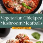 Delicious Vegetarian Meatballs made from chickpeas and mushrooms, packed with flavor and perfect for a hearty plant-based meal. These meatballs are sautéed to a golden brown exterior and can be served with your favorite tomato sauce for a comforting dish.