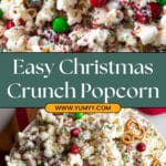 This festive Christmas Crunch recipe combines the delightful crunch of freshly popped popcorn with the sweetness of white chocolate, colorful red and green M&Ms, crunchy pretzels, and cheerful holiday sprinkles. Easy to make and perfect for holiday gatherings, this treat offers a perfect balance of salty and sweet flavors that will please both kids and adults alike.